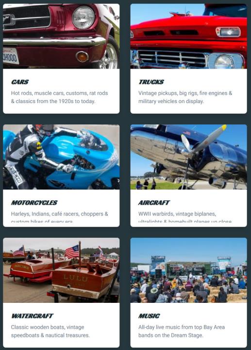 There are car shows, air shows, motorcycle shows, tractor shows, maker fairs, music festivals, food festivals, and living history festivals galore. Mix them all in one venue on one day, and you’ve got Half Moon Bay California’s remarkable, one and only Pacific Coast Dream Machines Show—since 1990, this show has been a massive celebration of mechanical ingenuity, power, and style.