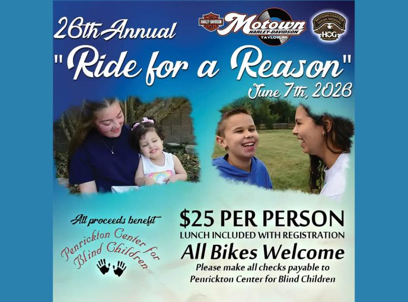 Event Description: Join us for an incredible day of riding, community, and giving back! The 26th Annual Ride for a Reason benefits the Penrickton Center for Blind Children, with all proceeds going directly to support their amazing mission