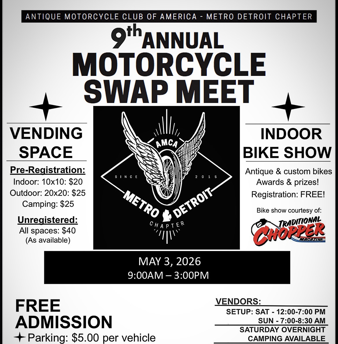 9th Annual AMCA DETROIT Motorcycle Swap Meet |