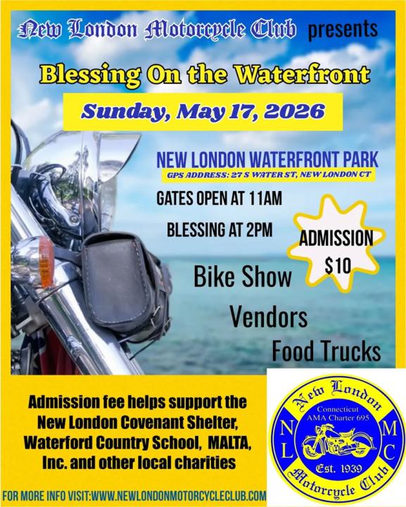 The Blessing of the Bikes returns to Waterfront Plaza in New London, CT! Previously held at Ocean Beach, our venue changed to the Waterfront and returns here by popular demand.