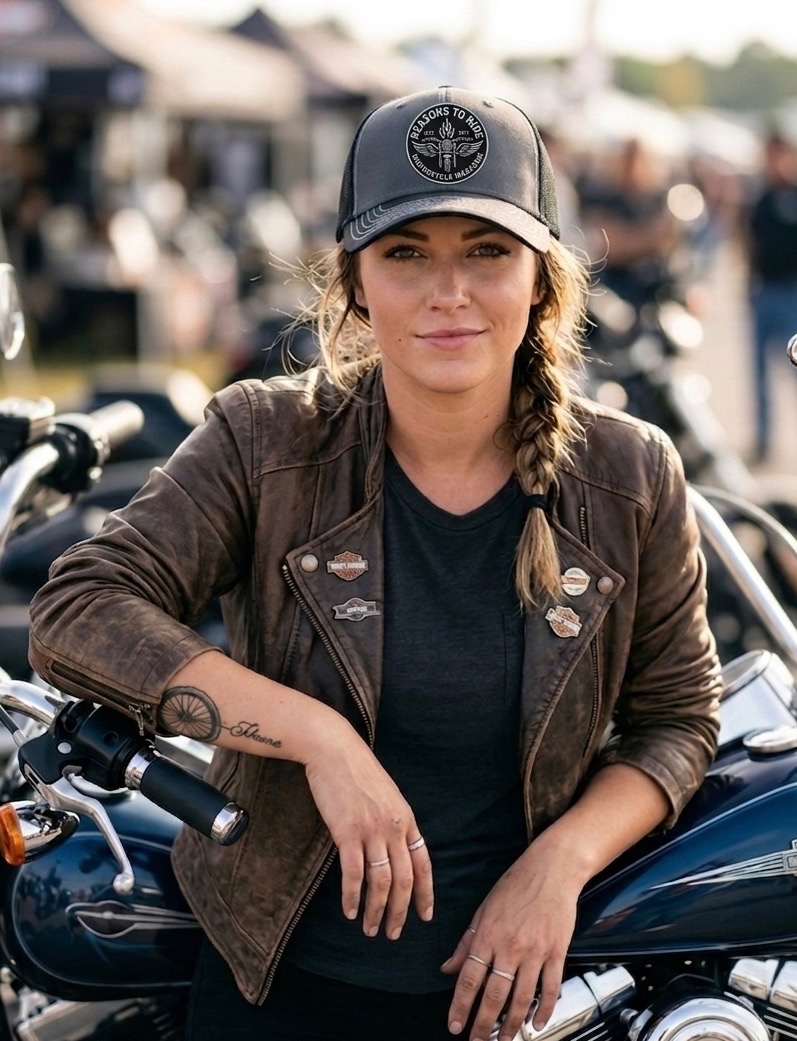 Custom Reasons to Ride Otto Trucker Hat with a soft and comfy sweatband!!